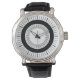 A watch face with a concentric circles design, in which rays are arranged to mark the minutes and hours in the outer circle. This version has a solid coloured first inner circle and the second inner ring has minute rays. All the rays line up correctly and the hours are marked with a bolder line in the outer circle providing both a decorative but practical clock face.