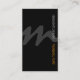 This elegant bold script concert promoter entertainment and performing arts business card features a large bold script dark grey monogram right in the middle of the card over a black background. Your name and title appear vertically on the right edge of the card in orange and white. Your other contact details including your business logo appear on the back of the card. The back of the card also features a smaller monogram letter in the same script font. Perfect for entertainment, performing arts, show business, talent, talent skills, talent management, artistic skills, bold, monogram, dark, black, elegant themes.