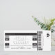 Customise this fun ticket and announce your wedding date in a bold and unique way! Classic black and white with accents of grey. A mix of a digital fonts for a true concert ticket feel. Print additional travel, accommodation and/or RSVP details on the back.