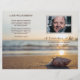 Beach-themed funeral program featuring a photo of a conch lying on a beach at sunrise. Add a photo of your loved one along with their name and years living. On the back you can write the obituary and program. Fold it yourself for a practical program!