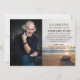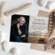 Funeral invitation with a photo of your loved one and the invitation wording against a serene photo of a conch lying on the sandy beach at sunrise. Ocean-themed funeral invitation with a shell lying on the sand. Memorial service invitation personalised with a photo next to the invitation wording against a photo of the ocean at sunrise.