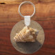 A conch shell rests on the sandy beach with its shadow stretching out from the gentle side lighting of the sunset. The light captures the wavy ridges of the shell spiral. Colour photograph taken at Playa Grande, Costa Rica on the Pacific Coast. Customise this seashell beach keychain with your own text or images for a perfect sea shell gift!
