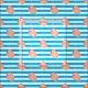 A nautical summer beach pattern of conch seashells on a coastal blue strip background.