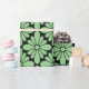 This fun and modern pattern is reminiscent of silver concho flower designs often seen on belts and jewellery in the American Southwest. Pattern features light green diamond shaped flowers on black background
