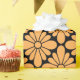This fun and modern pattern is reminiscent of silver concho flower designs often seen on belts and jewellery in the American Southwest. Pattern features marigold diamond shaped flowers on black background
