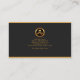 A simple minimalist black elegant design. Card features two rectangle columns, one grey, the other black. It is encapsulated by a light brown stripe at the top and bottom of the card ; Another brown stripe acts as a demarcation between the two spaces. At the top layer, you find your optional faux gold logo of a chauffeur which you can use. Directly underneath in the black column are your prestigious name and job title with the contact details directly underneath.