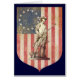 Drawing of Concord Minuteman with 13 colonies (Betsy Ross) first American flag in the background. You can add your message on the cover and greeting inside.