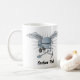 Concrete mixer beige with wings, pickaxe and shovel. Custom text on each side.