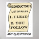 Conductor's List Of Rules: I Lead, You Follow! Any Questions? Could anything be simpler? See all our musical designs on on cups, mugs, tee shirts, sweatshirts, hats, and other gifts and clothing. Visit our TemperamentalMusician web site for more musical designs!href="http://www.temperamentalmusician.com">Visit our TemperamentalMusician web site for more musical designs!