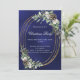 Cone pine greenery gold frame blue Christmas Party Invitation