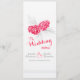 Double-sided simple modern pine cone drawing wedding reception dinner menu in warm red and grey hues on white. Ideal for your rustic or winter wedding dining tables or to give out prior to the wedding. Personalise your own names and your four course menu details to the reverse. Unique pencil cones drawing and design by Sarah Trett.