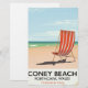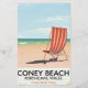 Coney Beach Porthcawl Wales travel poster with a deck chair on the sandy beach during the day. vintage style travel poster. Bus or coach British vacation print.