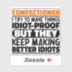 Funny Confectioner Sayings "Confectioner I Try To Make Things Idiot Proof But They Keep Making Better Idiots". Grab this Funny Confectioner design as a funny gifts for an awesome mum, dad or friend.