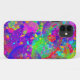 A vivid abstract in shades of blue, turquoise, lime green, purple, orange, fuchsia, yellow and more.