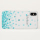 This stylish white Case-Mate Barely There iPhone X Case has a light to bright turquoise blue confetti pattern with a customisable name template for you to personalise if you wish, or you can delete the name if you prefer that.
