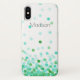 This stylish white Case-Mate Barely There iPhone X Case has a multi-coloured bright blue and green confetti pattern with a customisable name template for you to personalise if you wish, or you can delete the name if you prefer that.