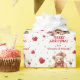 The cute pattern on this Christmas wrapping paper is of an adorable Teddy Bear sitting with Holiday gift packages. Between the bear images is your custom text in red. Everything is placed on a multi colour round ball confetti background that is sprinkled with red hearts and some gold stars. This is a perfect paper for grandparents, parents, aunts and uncles to wrap family gifts in. Make it say whatever you'd like!