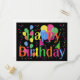 Confetti, Party Hats and Balloons Black Background Invitation Postcard
