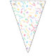 Whimsical pastel patterns of mixed confetti and solid colours in these bunting flags bring a celebratory touch to any special occasion.