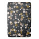 A pattern of random confetti dots in a pastel peach, maple brown and grey palette, with gold glitter on a dark background.