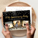 Elegant custom anniversary party invitation design featuring gold and silver confetti over a black background, modern script typography with the words "50th Anniversary Party" (in gold), your name and anniversary date (in silver) and three of your favourite photos framed in metallic gold foil. Personalise it with your party details on the back of the invitation.