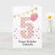 A colorful pink 5th birthday card for girls, which you can personalize with her name. The front of this colorful 5th birthday card for her features the number five in a pink polka dot with a pink balloon ready to float away.The background has some colorful confetti and a soft gold bunting banner at the top.The inside message can be easily personalized if you wanted.