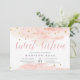 Chic sweet sixteen invitations in blush pink and grey feature sheer washes of blush pink watercolor at the top and bottom with faux gold glitter and "sweet sixteen" in pink watercolor calligraphy lettering. Personalise with your sweet 16 birthday party details beneath in elegant grey.