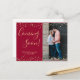 Gold Burgundy Photo Pregnancy Announcement postcards. Expecting parents! Modern hand lettered typography"coming soon" script card to share your happy news with family and friends. Features above and the bottom gold confetti frame on burgundy background. You can personalise the design by replacing the simple texts and vertical photo. #3351 If you need help or matching items, please contact to me!