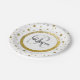 Add your custom name and initial to this pretty, light airy and feminine gold and silver confetti background print pattern design. Circular round shape with a faux gold leaf border and your single letter initial and name.