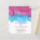 A bright and colorful Baby Gender Reveal Party Invitation. On a white background, blue and pink smoke and glitter confetti slowly drops down around the typography text that reads Baby Your Surname. Personalize by adding your full event details to the front and back.
