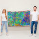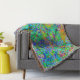 A quality printed throw has its advantages. This is a much finer weave throw than its loopier cousins, and though lighter, it is worth the investment for custom room accessorizing. The back is much prettier than the typical brown, and the fringe on the long sides very vivid, the selvage nicely done. Before photographing, I washed the throw in cold water, delicate, with a thicker woven throw the same size. On tumble dry low, this throw was dry in half the time as the other. This is a very practical quality if you use throws for furniture covers or to wrap up in frequently. The sleekness of the fabric makes it a great layer for accenting or protecting without the feeling of sitting on too much stuff. Perfect for napping or when you feel a light chill coming on. The color printing is beautiful and on this fabric, matched the design and color of my Photoshop image. This is an advantage for blending room fabrics and colors. The fringe on the short sides prints the colors from the design image and therefore varies from the side fringe. I streaked a white fractal line through the plaid pattern to give the illusion of weaving. This printed as crisp as an illusory thread, and put some white in the short side fringe, showing another advantage of print vs loomed- for artistic purposes, line lines, detail, and color integrity can be planned and preserved. My loomed throws have color limitations and more of a needlepoint texture. Print throws reproduce an exact image. The throw felt a little stiff straight out of the package, but this went away in the first delicate wash. Of course I searched the wash water for ink or bleeding and there was none.