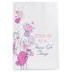 Show your appreciation to your flower girls or other wedding attendants with this thank you wedding favour gift bag. Perfect to fill with a large special gift to show your appreciation. Fashionable modern pastel shades of pink, purple plum with classic navy blue. Matches keepsake wedding bags and cards. Customise / personalise these gift favour bags with your attendants title, name and a personal message or thanks. Currently reads Thank you Flower Girl Tanya. Uniquely designed by Sarah Trett.
