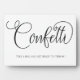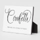 This confetti wedding sign tabletop plaque with easel is a festive and stylish way to add personality to your celebration. Designed with a playful confetti-inspired look, it brings a joyful touch to your décor while guiding or welcoming guests. The sturdy plaque paired with the easel stand makes it easy to display on tables, gift stations, or entryways. Its compact size ensures it fits seamlessly into your setup without overwhelming other decorations. Crafted with quality materials, it’s both durable and elegant, perfect for reusing as a keepsake after the big day. The confetti design suits a variety of wedding themes, from modern to whimsical. This sign adds the perfect blend of charm and function, helping your special day feel polished and celebratory.