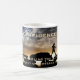 "Confidence" hiking photo coffee mug. Saying is "Confidence: The feeling you have before you fully understand the situation." Our original silhouette photo of hiker on dangerous rocks. All Rights Reserved © 2012 Alan & Marcia Socolik.
