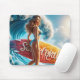 Confident Surfer Girl Walking Beach Waves Art Mouse Pad
