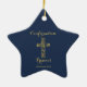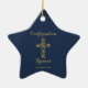 Modern Confirmation gold cross name star ornament with a blue background. Personalise with your name and date.
