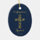 Modern Confirmation gold cross name ornament with a blue background. Personalise with your name and date.