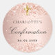 Confirmation blush rose gold name girl classic round sticker