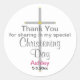 Elegant Thank You Confirmation Daughter round stickers. Simple hand-painted silver cross with gold accents against a white background. Personalise with your child's name in pretty pink text and date of Confirmation in black text. Original Graphic Artwork and Design © TamiraZDesigns.