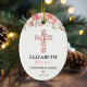 Adult confirmation ceramic ornament featuring a religious floral pink cross, and an elegant text template that is easy to personalize.