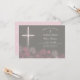 This elegant and pretty confirmation invitation card features a cross and illustrated pink daisy flowers along the bottom. The background colour and text can be customised to your liking for your special religious sacrament.