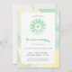 This stylish and modern confirmation invitation features a stained glass rosette church window and a watercolor style border and back side of the invite. It is yellow and green and has a gender neutral look that could be used for a boy OR girl OR both (twins, multiples). The text can be customised for your special religious occasion.