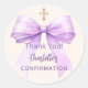 Confirmation lavender bow ivory cross thank you classic round sticker