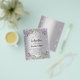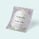 A modern, stylish and glamourous invitation for a Confirmation, A faux silver looking background with violet faux glitter, sparkles, lavender florals, flowers and eucalyptus greenery. The name is written with a modern hand lettered style script. Personalise and add your details.