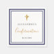 For an elegant confirmation. A chic white background. Decorated with navy blue frames and a faux gold cross. Personalise and add a name and a date. Black and golden letters.