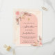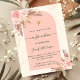 An arch frame and rose gold marble print as background. Decorated with rose gold and pink florals, roses and pampas grass. Personalise and add a name and details.
