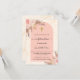 An arch frame and rose gold marble print as background. Decorated with rose gold and pink florals, roses and pampas grass. Personalize and add a name and details.