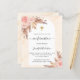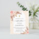 An arch frame and rose gold marble print as background. Decorated with rose gold and pink florals, roses and pampas grass. Personalise and add a name and details.