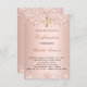 A rose gold background. Decorated with rose gold, blush confetti. Personalize and add a name and details. The name is written with a hand lettered style script