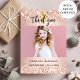 A rose gold gradient background decorated with faux glitter, sparkles. Personalise and add your photo and thank you note.